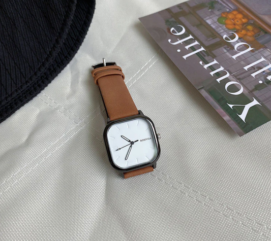 極簡方形時尚手錶 - 啡色錶帶 (換領日期:1月1日 至 15日)
