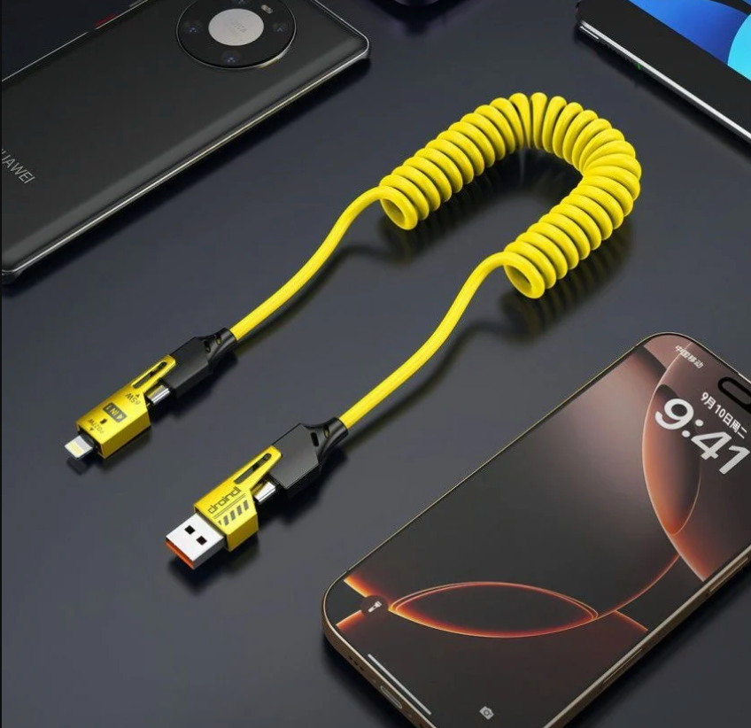 65W快充四合一彈簧1.5m數據線 - 黃色 (換領日期:11月16日 至 30日)