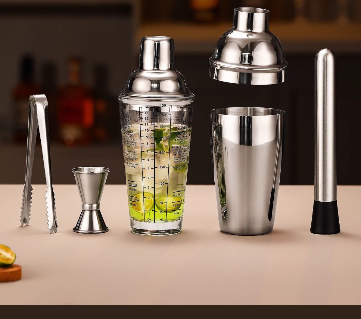 ✨ 三段式雪克杯:採用無鉛玻璃與不鏽鋼材質,品質安穩有保障。