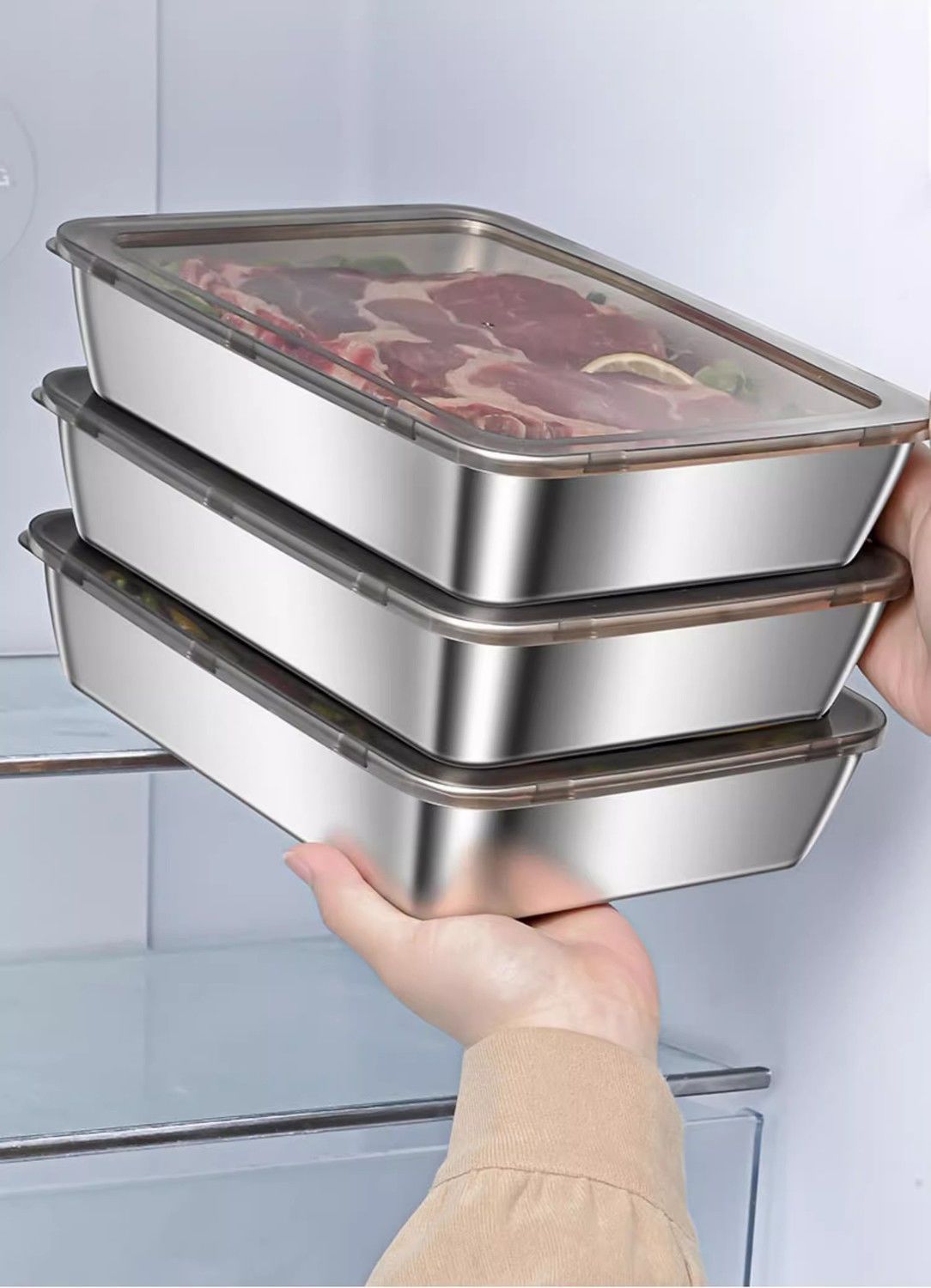 【不鏽鋼可微波 2200ml 有蓋保鮮盒】