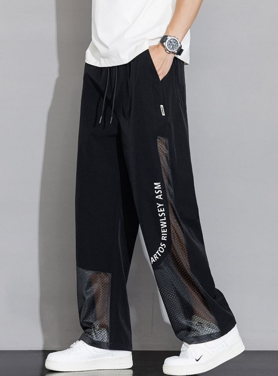 【寬鬆網紗運動闊腳褲 - 黑色】